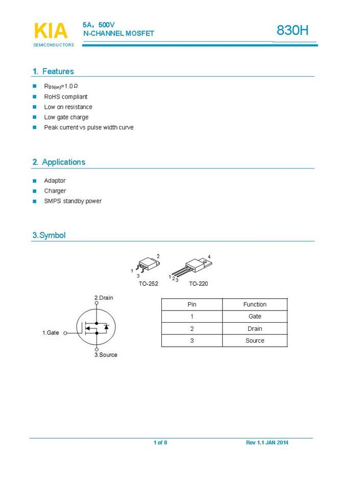參數: ID(A): 5    BVDSS(V): 500    RDS(ON): 1.2    Qg(nC): 20    Package: TO-220、TO-252
