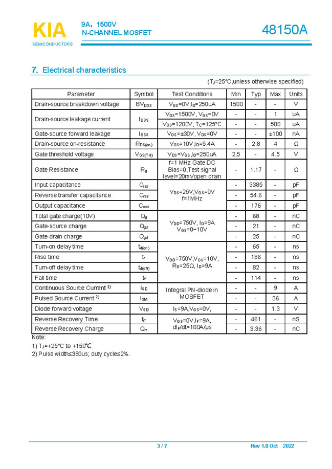 參數(shù): ID(A): 9    BVDSS(V): 1500    RDS(ON): 2.8Ω    Qg(nC): 68    Package: TO-247